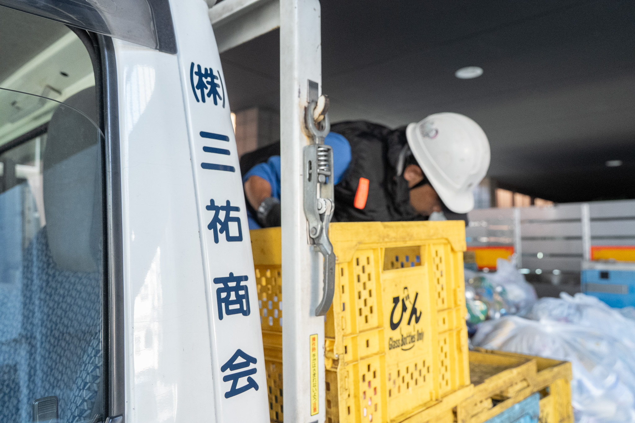 2トントラックを使用し、ビン・カン・古紙などの資源回収業務を
